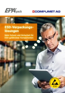 2 ESD-Verpackungen In unserer hochtechnisierten Welt, in der präzise elektronische Komponenten den Kern zahlreicher Innovationen bilden, verstehen wir die entscheidende Bedeutung des Elektrostatikschutzes. Mit unserer Eigenmarke EPApack® bieten wir umfassende Verpackungslösungen, die dissipative, conductive und Abschirmungs-Elemente integrieren, um sicherzustellen, dass Ihre Bauteile in einer kontrollierten und geschützten Umgebung bearbeitet, gelagert und transportiert werden können. Auf den Folgeseiten finden Sie einen Auszug aus dem umfassenden Programm an ESD-Verpackungen der DPV Elektronik-Service GmbH – Ihrem verlässlichen Partner für erstklassigen ESD-Schutz. ESD-sicher verpackt – mit EPApack® Arten von ESD-Verpackungen Ableitfähige (dissipative), leitfähige (conductive) und abschirmende (shielding) Verpackungen unterscheiden sich hauptsächlich in ihrer Fähigkeit, elektrostatische Ladungen zu handhaben. In der DryShield-Klasse ist darüber hinaus auch sicherer Schutz vor Feuchtigkeit geboten. Dissipative oder ableitfähige Verpackungen Eigenschaft: Diese Verpackungen leiten elektrostatische Ladungen kontrolliert ab und bieten daher einen idealen Schutz für elektronische Bauteile. Einsatzort: Diese Verpackungen kommen nur in EPAs zum Einsatz. (Electrostatic Protected Area) und dienen dort zum Transport und Lagerung von elektronischen Bauteilen und Baugruppen. Conductive oder leitfähige Verpackungen Eigenschaft: Das Material ist niederohmig. Um eine mögliche Schädigung von elektronischen Bauelementen zu vermeiden, ist auf einen Luftspalt zu den Bauteilen zu achten. Einsatzort: Diese Verpackungen kommen nur in EPAs zum Einsatz. (Electrostatic Protected Area) und dienen dort zum Transport und Lagerung von elektronischen Bauteilen und Baugruppen. Shielding oder abschirmende Verpackungen Eigenschaft: Verpackungen mit elektromagnetischer Abschirmung (EMI Shielding) schützen vor elektrostatischen Ladungen, und bieten außerdem Schutz vor elektromagnetischer Strahlung. Einsatzort: Dies ist die standardmäßige Verpackung für alle elektronischen Bauteile zum Transport und Lagerung inner-/ und ausserhalb einer EPA. EPApack® V1.0 | © Compumet AG 2025 | www.compumet.ch